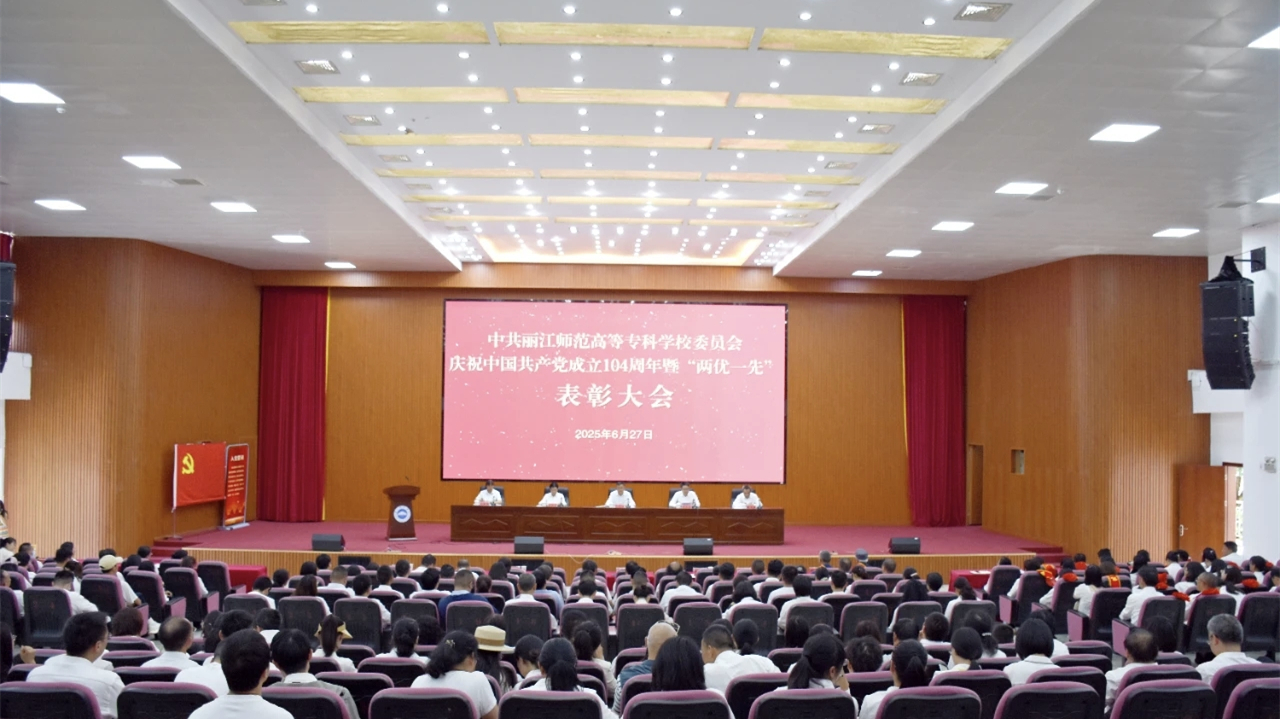 为庆祝中国共产党成立104周年,6月27日,我校在图书馆报告厅召开庆祝中国共产党成立104周年暨“两优一先”表彰大会。全校师生党员、离退休党员代表参加。表彰大会由党委副书记、校长陈本辉主持。