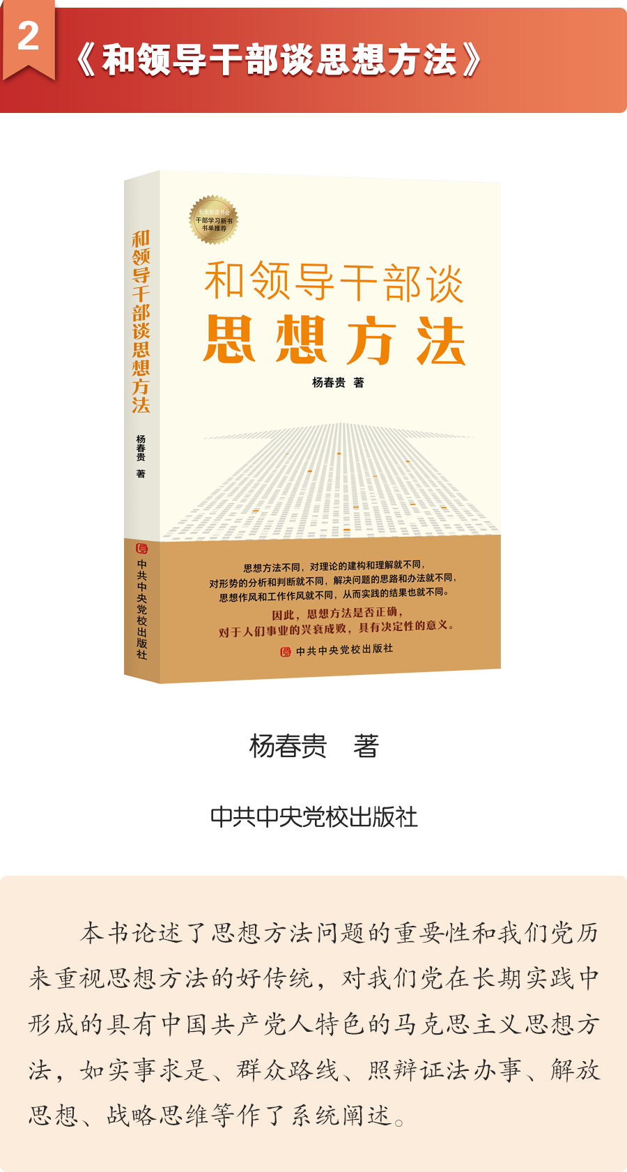 本次共推荐16种,包括《和领导干部谈思想方法》《学习二十大精神专家系列谈》《张富清画传》《老家什》等多题材多体裁主题好书,供您参考学习。